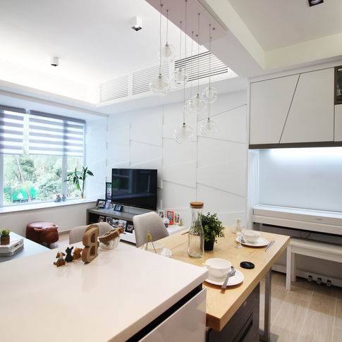單位3人居住, 將原來2廁改成1廁1衣帽間, 令主人房休息放鬆,沒有多餘壓迫高櫃. 廚房改開放式使入屋一眼空間感十足